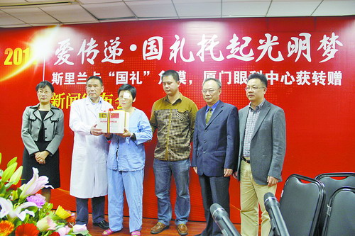 為回饋中方,斯里蘭卡第一夫人了解到我國目前眼角膜來源緊張后,贈送給主席夫人10枚眼角膜,隨后這份“國禮”被轉(zhuǎn)贈給廈門大學附屬廈門眼科中心。來自湖南、江西、福建、甘肅等地的12名眼疾患者分享了這一厚禮,重見光明。