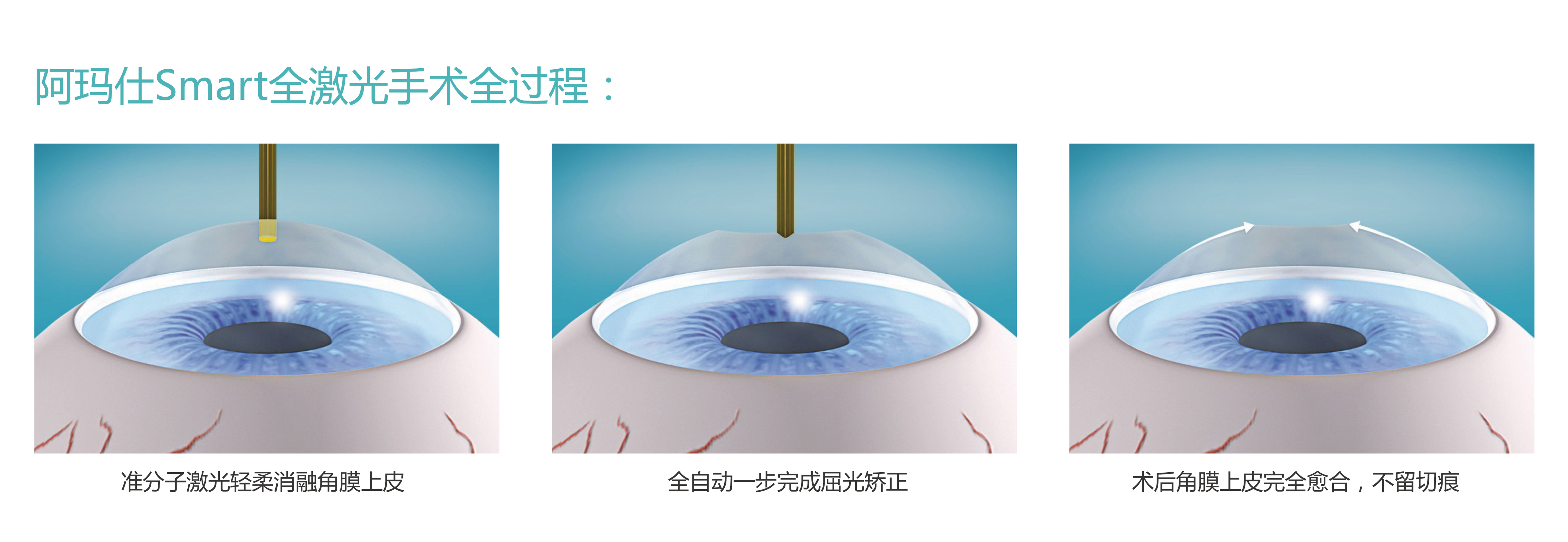 Smart全激光手術是一種表層角膜屈光手術方式。激光直接經角膜上皮進行治療,一步完成角膜上皮切割和屈光不正的矯正。