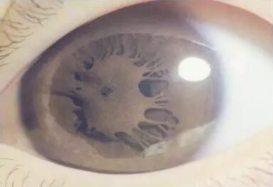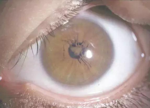 當(dāng)我在裂隙燈下看到上面的圖片時(shí),馬上明白虹膜識(shí)別門禁系統(tǒng)為什么會(huì)報(bào)錯(cuò)。我的視線快速劃過(guò)病歷上的信息:女性,21歲,視力:右眼0.2,左眼0.4!