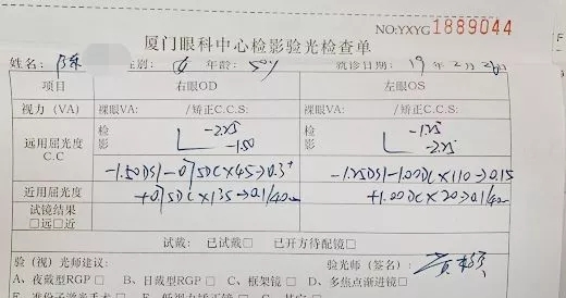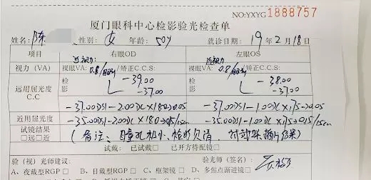 ▲陳女士的術(shù)前驗光單