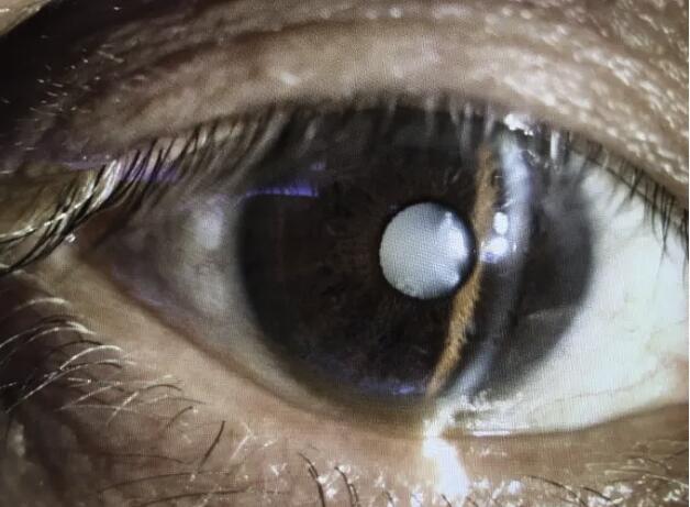 廈門(mén)眼科中心的陳偉主任和何雪洪副主任為他做了詳細(xì)的檢查,結(jié)果讓他大吃一驚。細(xì)致的陳偉主任發(fā)現(xiàn),他角膜鼻下方有一陳舊性縱向穿通性疤痕,眼下方6點(diǎn)位見(jiàn)一深褐色異物,猜測(cè)他眼部可能受過(guò)外傷。張先生努力回憶才想起來(lái),這可能是二三十年前的事兒了!