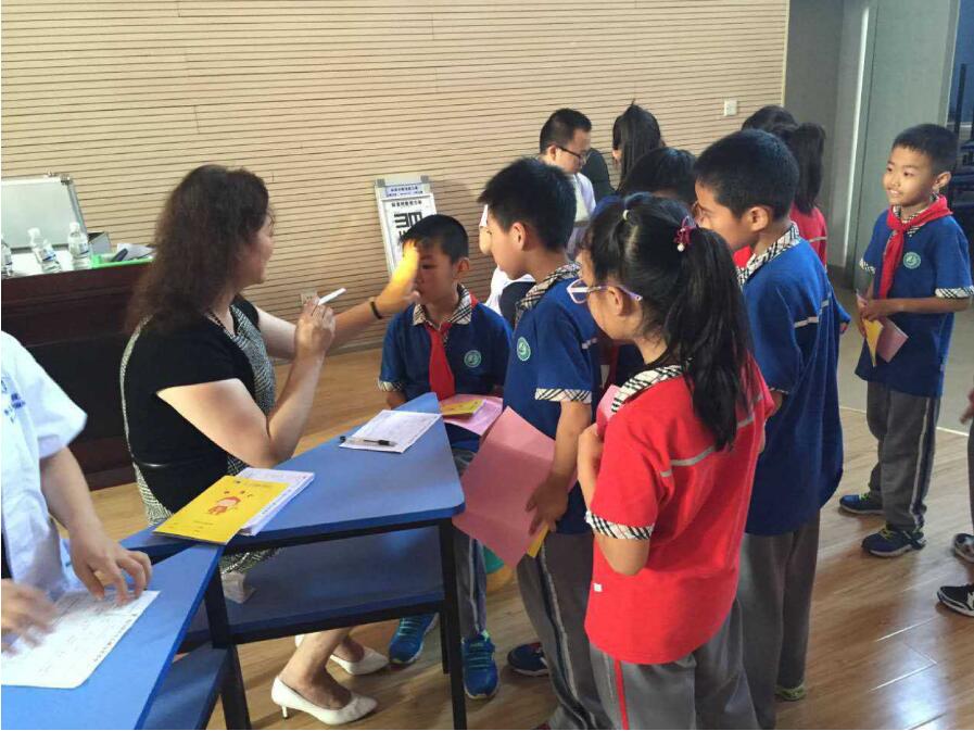 講座結(jié)束后,潘主任還為現(xiàn)場(chǎng)的孩子們免費(fèi)進(jìn)行眼睛檢查,孩子們的熱情很高也很配合潘主任的檢查。