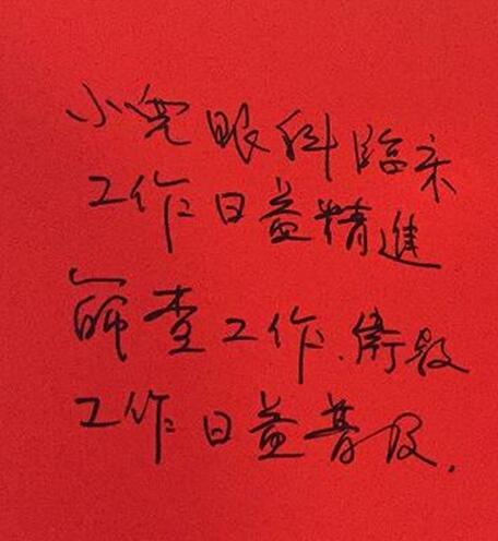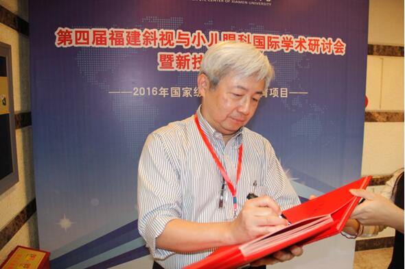 臺(tái)灣斜視與小兒眼科專家王藹侯教授就學(xué)齡前兒童的視覺篩查的經(jīng)驗(yàn)與展望作出演講,旨在讓小兒眼科醫(yī)生能通過(guò)篩查,及早發(fā)現(xiàn)和干預(yù)小兒眼病的發(fā)生,并為廈門眼科中心題詞“小兒眼科臨床工作日益精進(jìn),篩查工作、衛(wèi)教工作日益普及”以此勉勵(lì)。