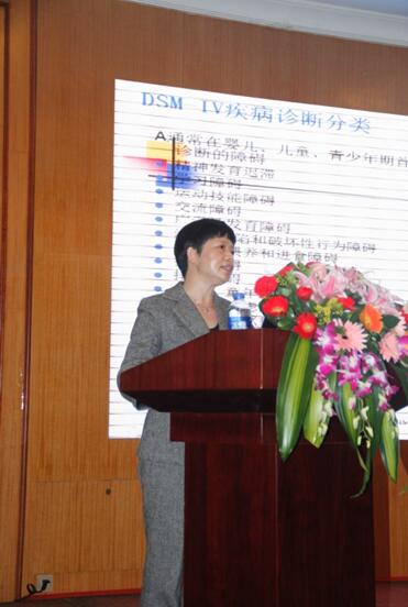 福建省婦幼保健院保健部主任歐萍教授在會(huì)議現(xiàn)場(chǎng)授課,內(nèi)容為《讓我們認(rèn)識(shí)孤獨(dú)癥(自閉癥)》