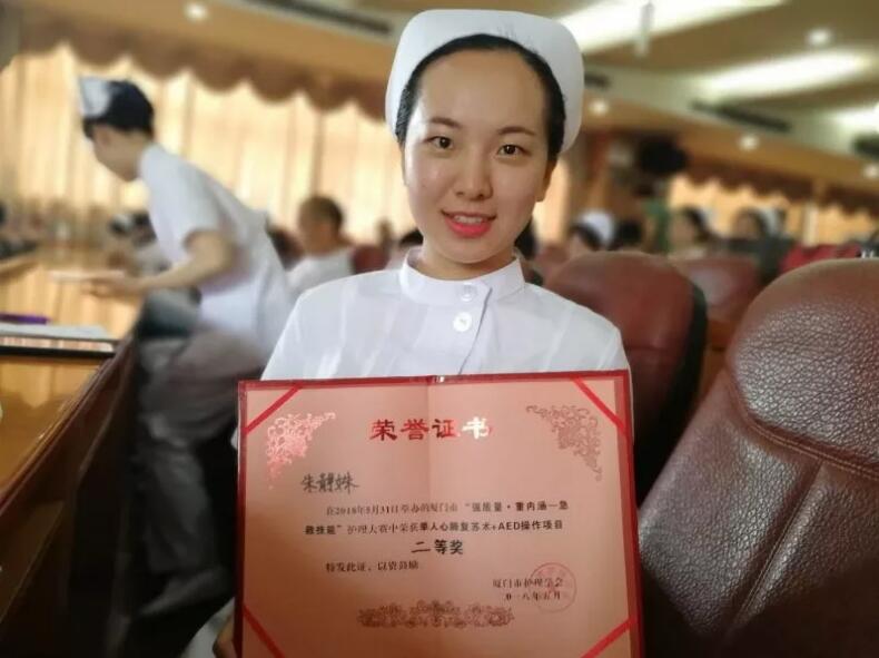 期間,廈門眼科中心手術(shù)室護(hù)士朱靜殊榮獲“單人心肺復(fù)蘇+AED操作項目”二等獎!