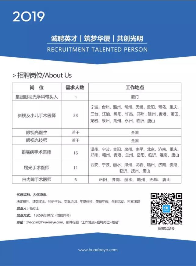 高速發(fā)展中的華廈眼科,邀請您一道筑夢華廈,共創(chuàng)光明!