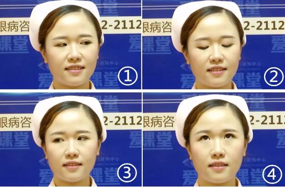 好了,我們緊接著下一個動作:視線移動。大家跟著我向上望三秒鐘;再向右望三秒鐘;再向下看三秒鐘;再向左看三秒鐘。這樣反復地做四次!